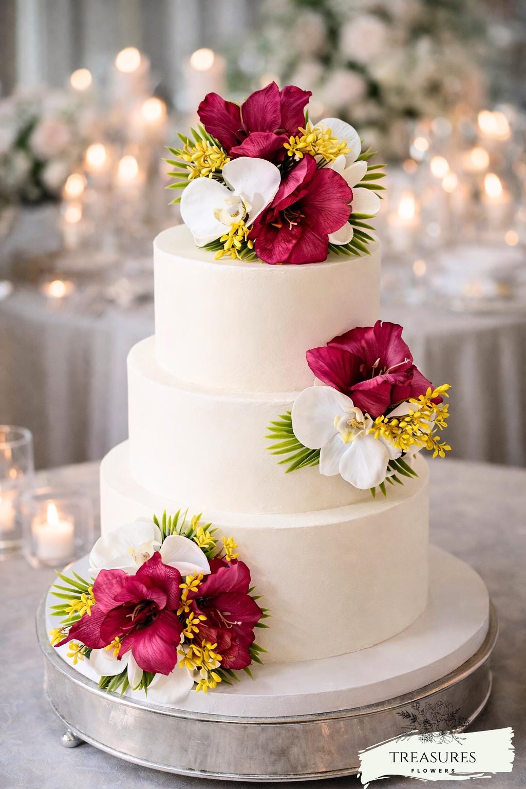 This beautiful decoration will give an elegant and tropical touch to your wedding cake.