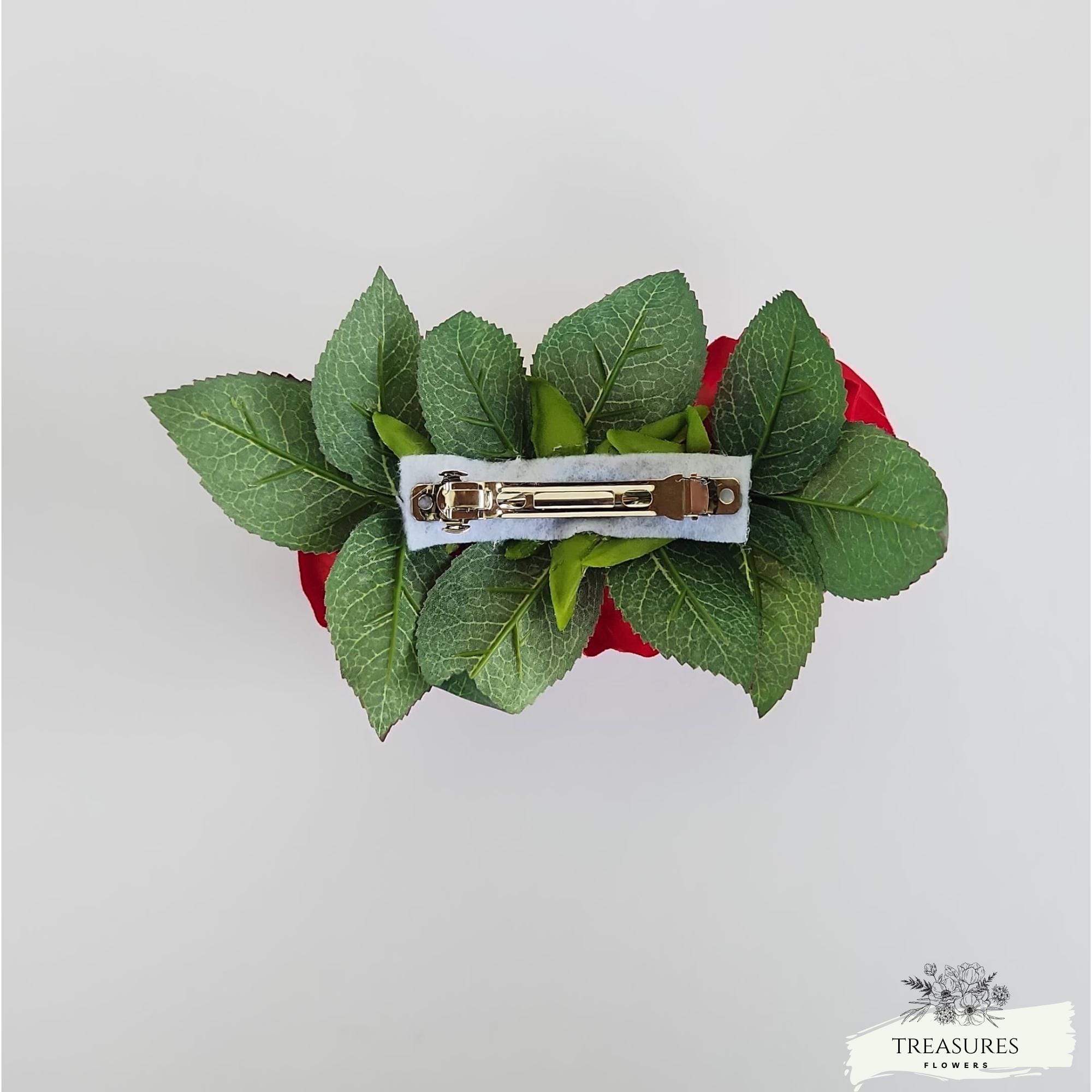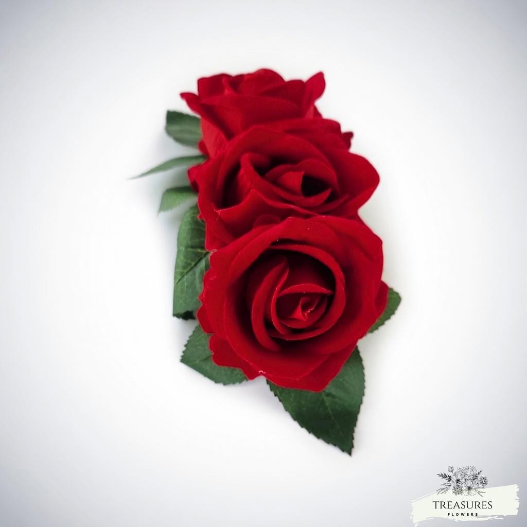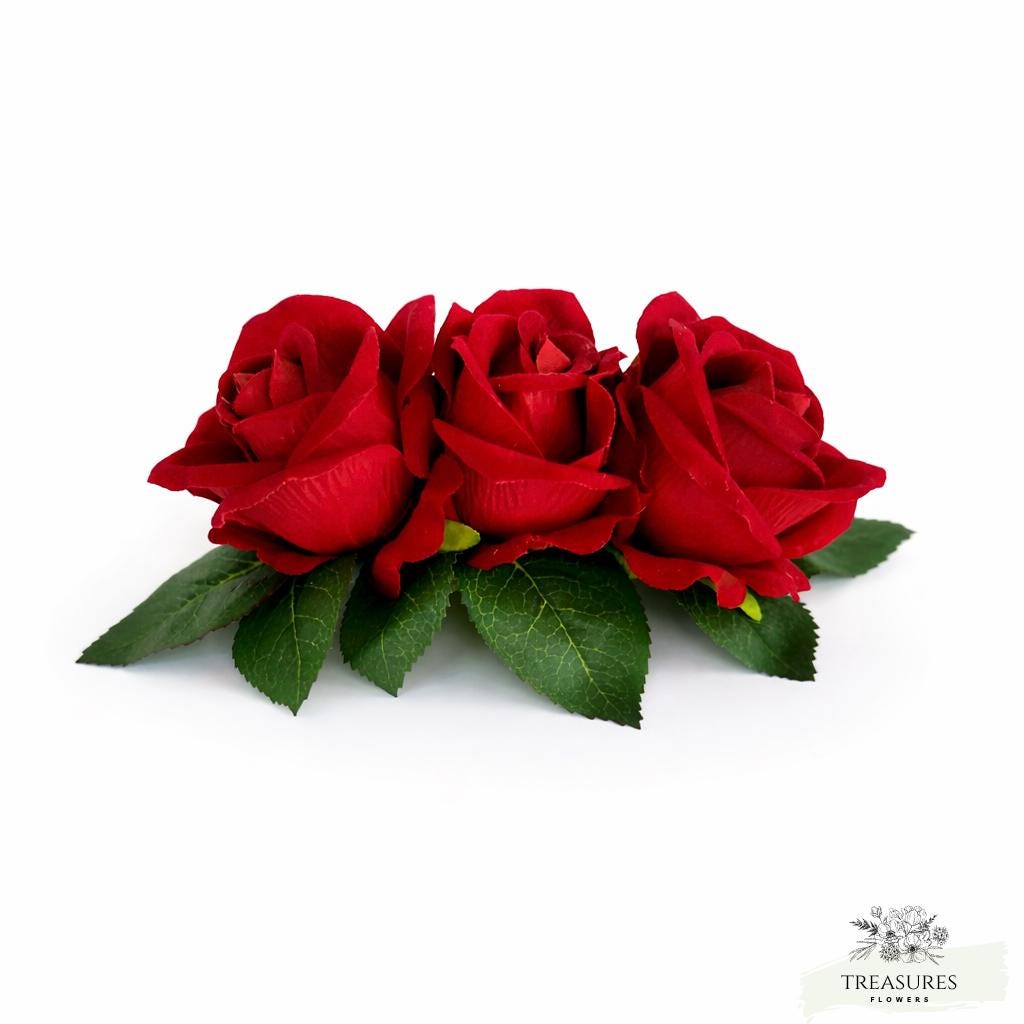 Add a touch of timeless romance to your special day with this stunning red rose floral headpiece. Designed to bring elegance and sophistication, this piece features beautifully crafted roses with rich red tones and realistic green leaves, perfect for creating a captivating bridal look.