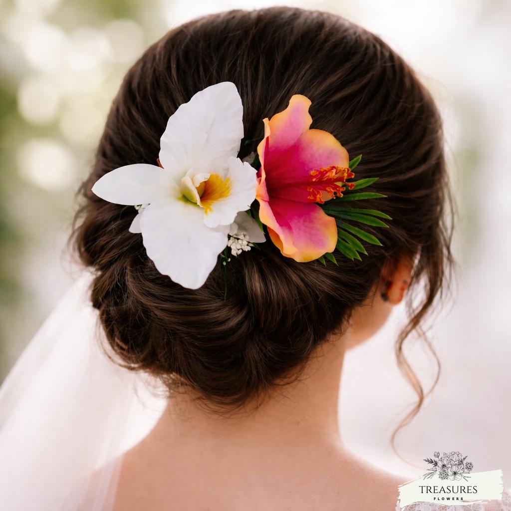 Tropical Hibiscus & Orchid Bridal Hair Piece – Wedding Hair Accessory